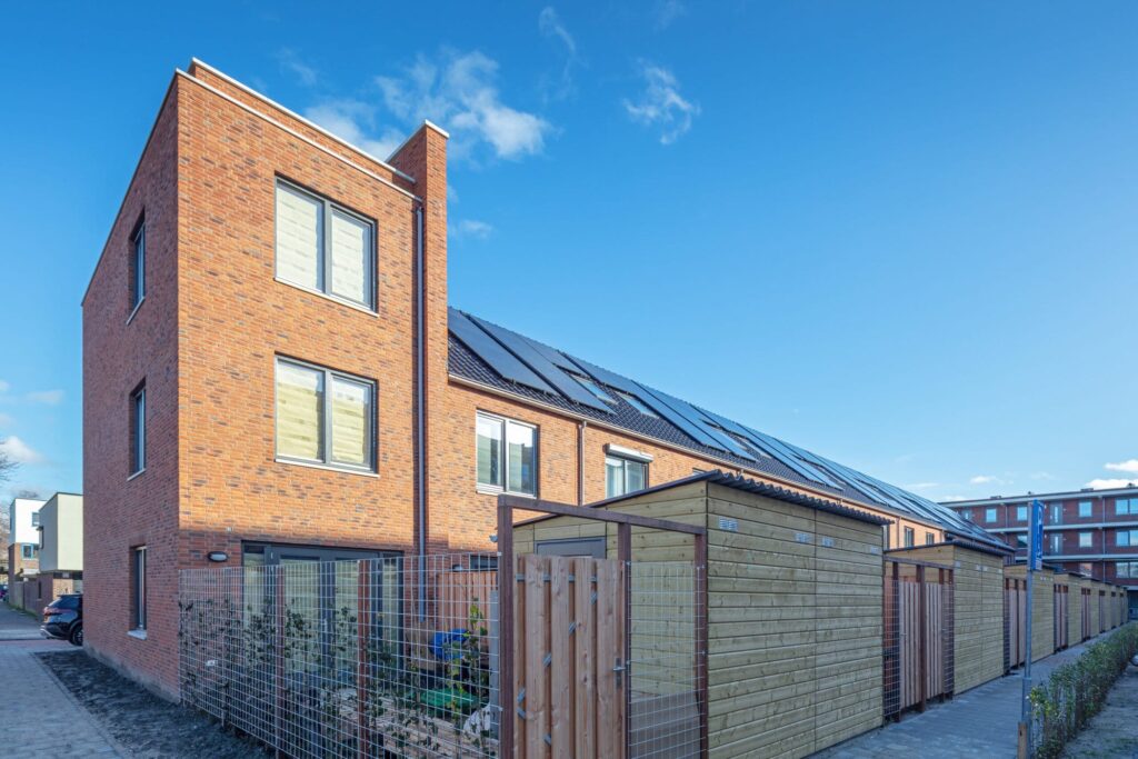 Voor de grondgebonden woningen werd de basisplattegrond van het WoonSlim concept aangehouden, versmald naar een beuk van 3,9 meter. In totaal werden er drie verschillende woningtypen gerealiseerd. Deze verschillende typen en de accenten in het metselwerk geven het woonblok een speels en statig karakter. De grote ramen aan de achterzijde zorgen voor een extra lichte woonkamer. Alle woningen beschikken over minimaal 3 slaapkamers. De woonoppervlaktes variëren van circa 90 m² tot 105m². De woningen zijn voorzien van een (bodem) warmtepomp en de meeste woningen zijn energieneutraal (beng 2=0) dankzij zonnepanelen op het dak. Door middel van vloerverwarming en koeling behouden de woningen een comfortabele tempratuur.