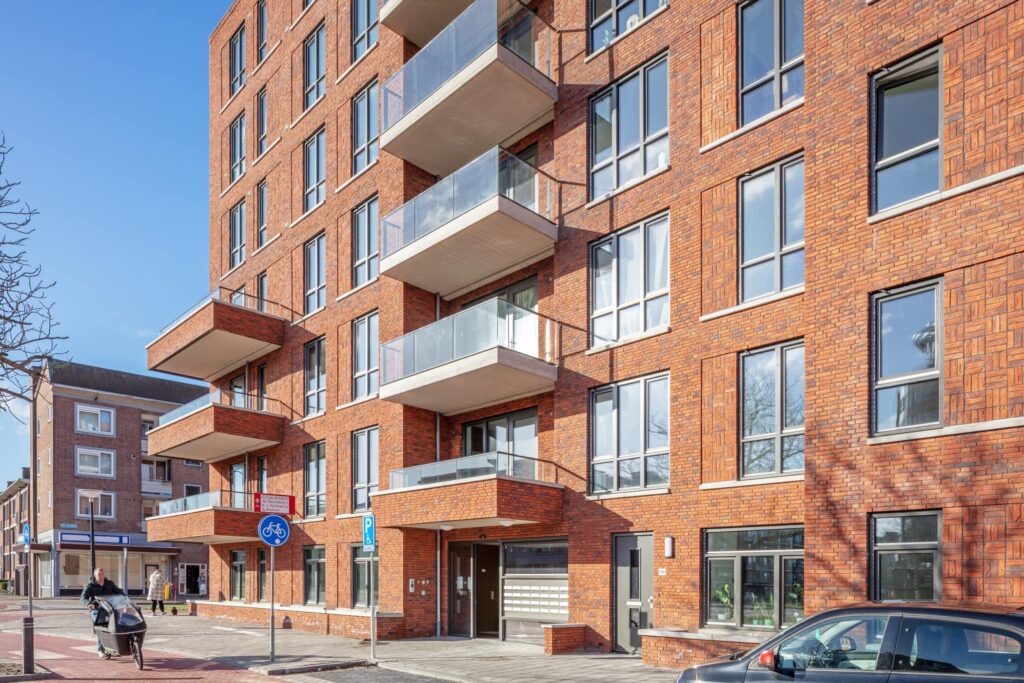 Het appartementengebouw vormt de entree naar de wijk en heeft een verhoogd bouwvolume op de hoek als herkenningspunt. Het heeft een duidelijk raster in de gevel dat wordt ingevuld met raamkozijnen en terugliggend siermetselwerk in blokverband. Op de begane grond zijn gemetselde bloembakken gemaakt. In combinatie met de steenkeuze is zo aansluiting gevonden op de Tuindorp architectuur van de wijk Sluispolder-West. Alle appartementen zijn voorzien van een overdekte buitenruimte (een terugliggend balkon of terras) en een overdekte galerij.